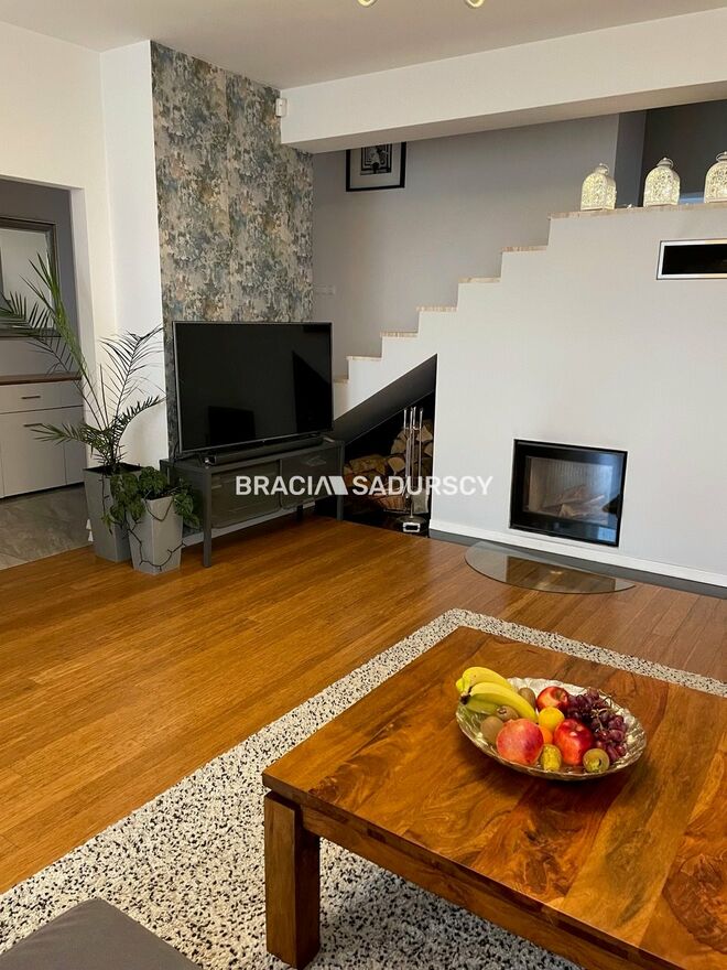 Salon z kominkiem, tworzący przytulną atmosferę - idealny na chłodniejsze wieczory