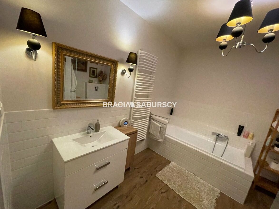 Na tym poziomie znajduje się również nowoczesna łazienka z wanną i dużą kabiną prysznicową, zapewniająca komfort i wygodę dla wszystkich domowników.